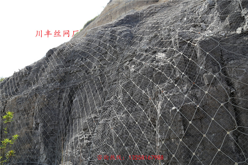 以鋼絲繩網(wǎng)為主的各類柔性網(wǎng)覆蓋包裹在所需防護(hù)斜坡或巖石上,以限制坡面巖石土體的風(fēng)化剝落或破壞以及為巖崩塌(加固作用),或?qū)⒙涫刂朴谝欢ǚ秶鷥?nèi)運(yùn)動(dòng)(圍護(hù)作用)。